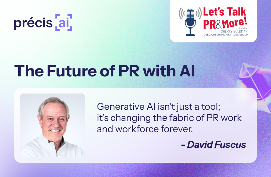 Public relations professionals find themselves at a pivotal juncture in the midst of a technological revolution. As influential voices in the industry offer guidance, they spotlight AI’s growing impact on PR. Recently, on the “Let’s Talk PR More” radio show, host Sherry Goldman engaged in an enlightening discussion with Précis AI’s CEO David Fuscus. Their dialogue explored AI’s transformative role in PR, touching on practical applications, evolving business models, ethical considerations, and what is necessary to thrive in the future PR landscape.